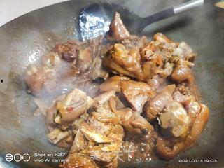 5. 加水炖煮:加入适量的清水,大火烧开后转小火炖煮1小时左右,直到猪蹄熟透。